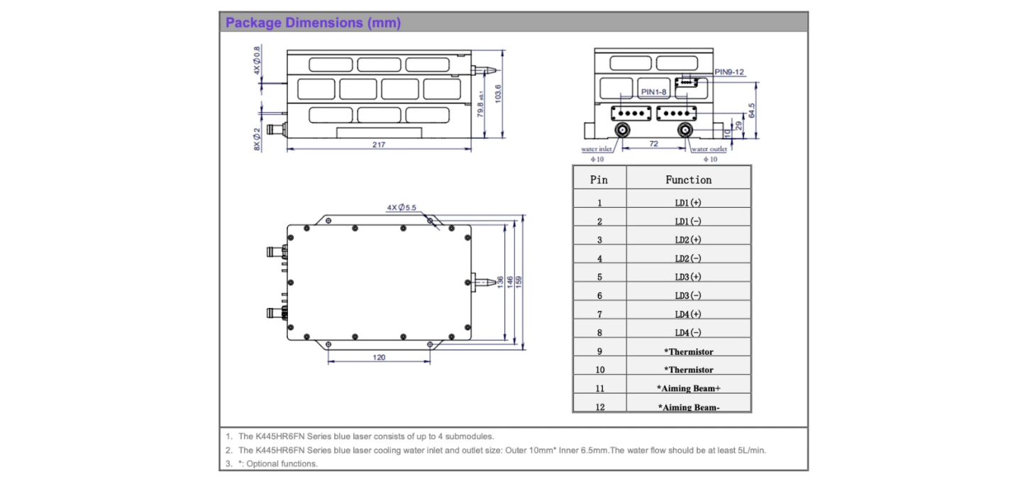 u For lasers with operating currents above 6A, connect leads by soldering. The soldering point should be as close to the middle of the pins as possible, with a temperature below 260℃ and a soldering time of less than 10 seconds.