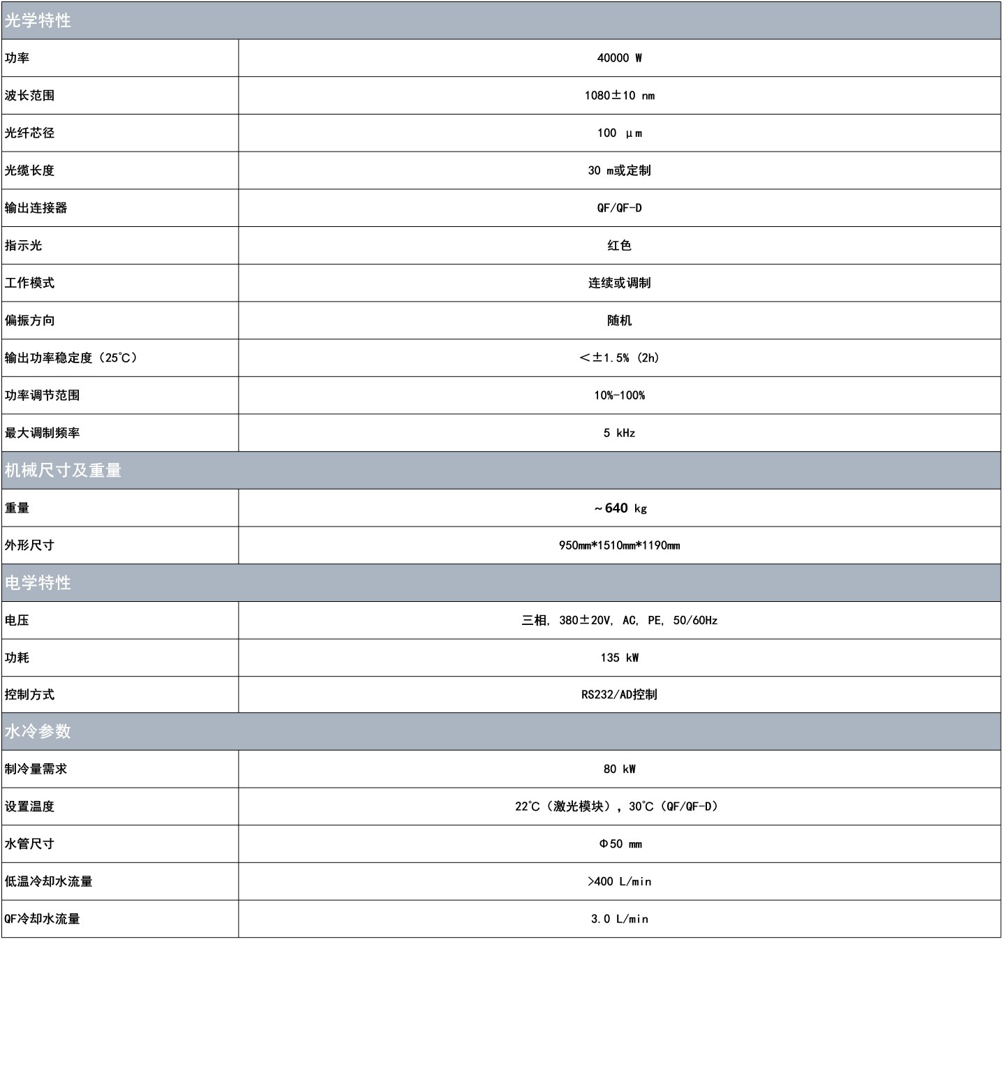 凯普林光电雷霆40kW光纤激光器拥有上佳的光束质量,激光光束可被聚焦到接近衍射极限,有连续和调制脉冲两种工作模式可选择,极大的降低加工热影响区;性能可靠,模块化全光纤设计,所有的光电器件被封装在坚固机壳内,能够承受严苛的工业应用条件。该产品广泛应用于激光切割,激光焊接,激光打孔等领域,可加工各种钢材、铝基和镍基合金、钛合金、氧化铝陶瓷等。同时,凯普林光电拥有专业的激光应用工程师,竭诚为您提供优质的激光系统解决方案。主要特性: